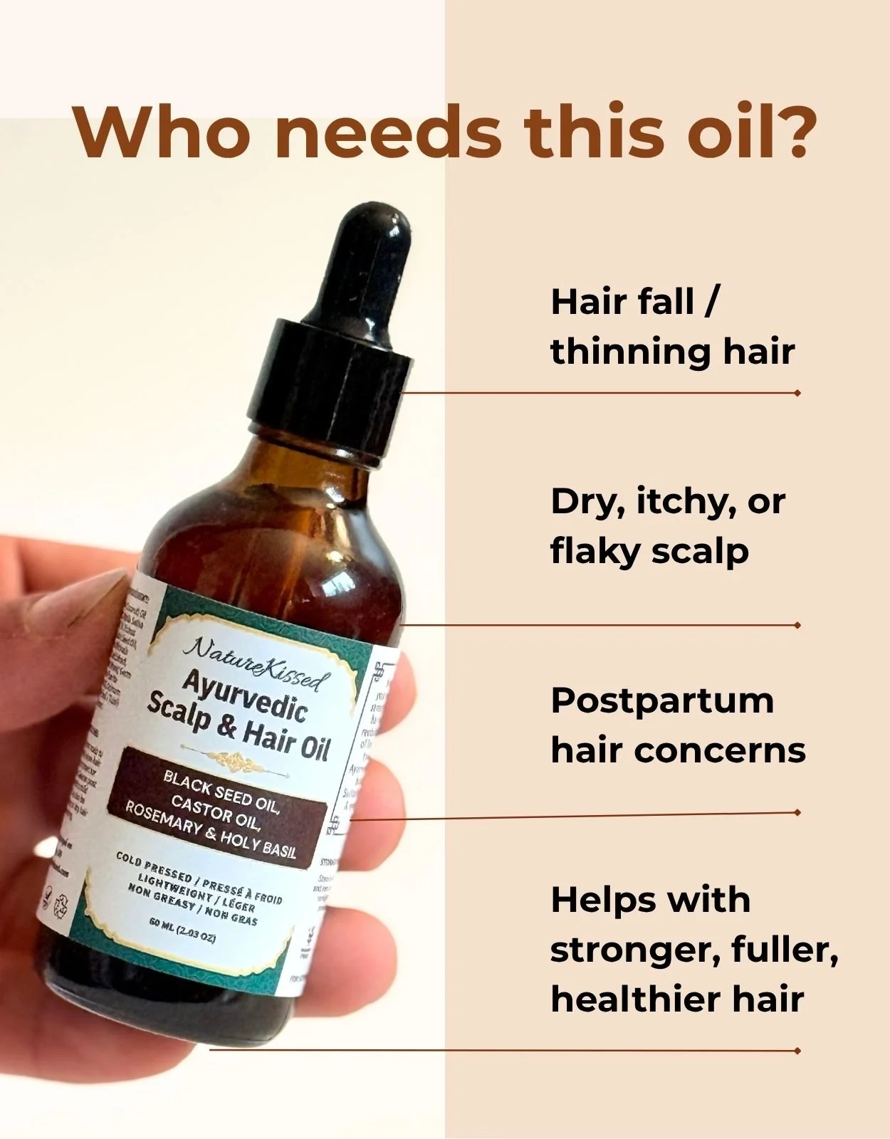 Our Ayurvedic Scalp & Hair Oil is a deeply nourishing blend of time-tested plant oils & botanicals.